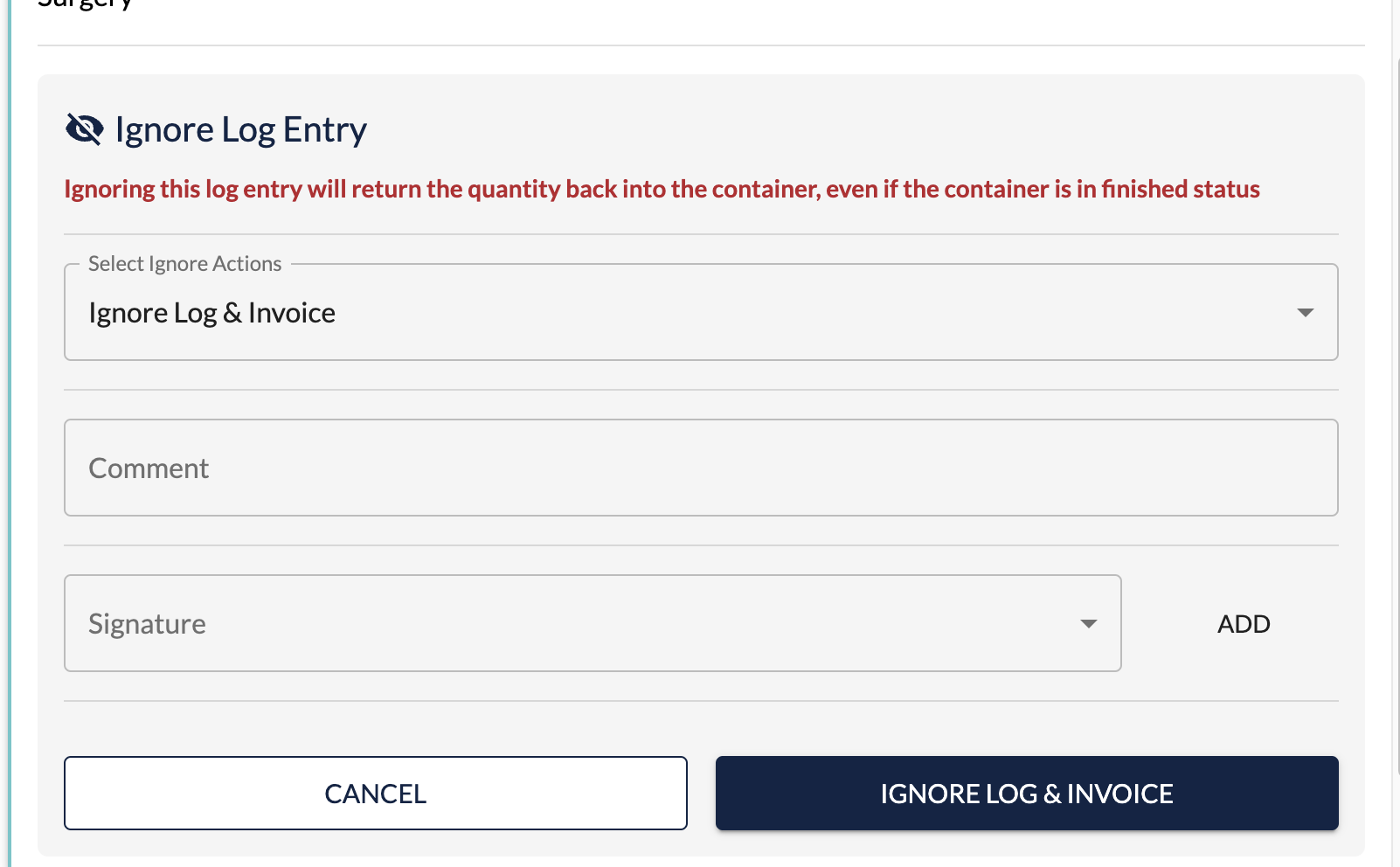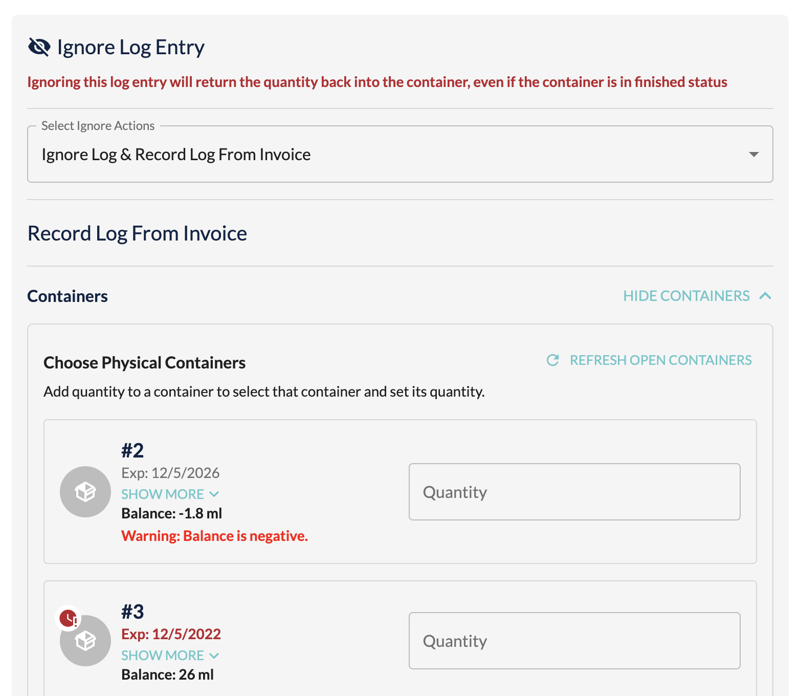 - Or, you can ignore the log entry and record a new log from the invoice