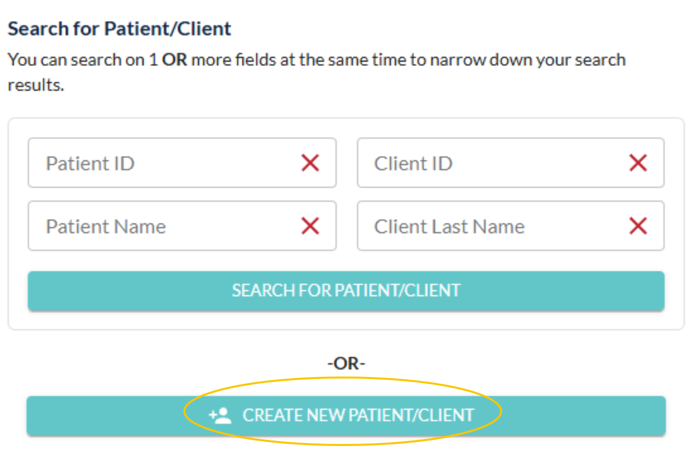- If the patient or client ID is not manually entered, a patient and client ID will be automatically generated