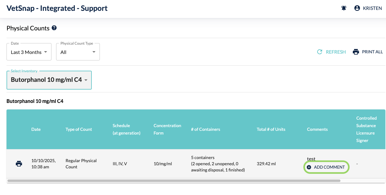 You have the option to add a comment to a recorded physical count. Go to Physical Count under Reporting, locate the physical count needed, and click on Add Comment.