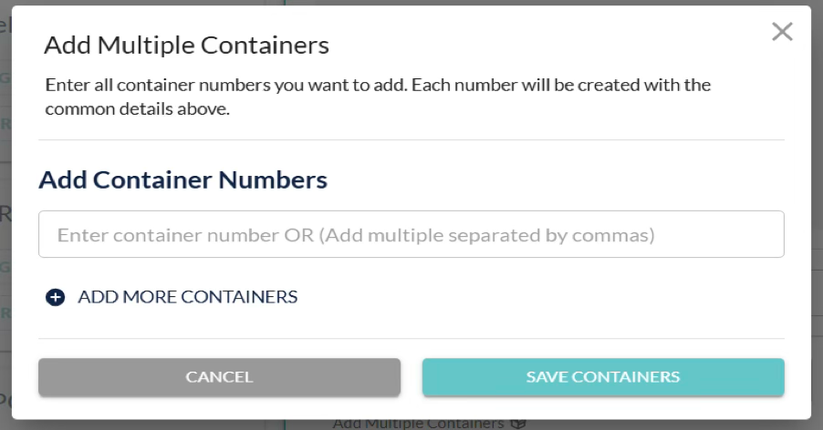 When this button is clicked, a popup will appear displaying a box for adding multiple containers.