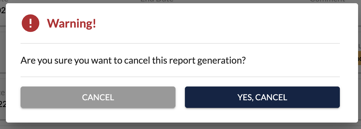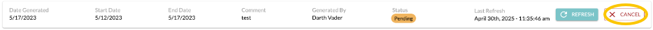 - Select Cancel on the report you wish to remove
