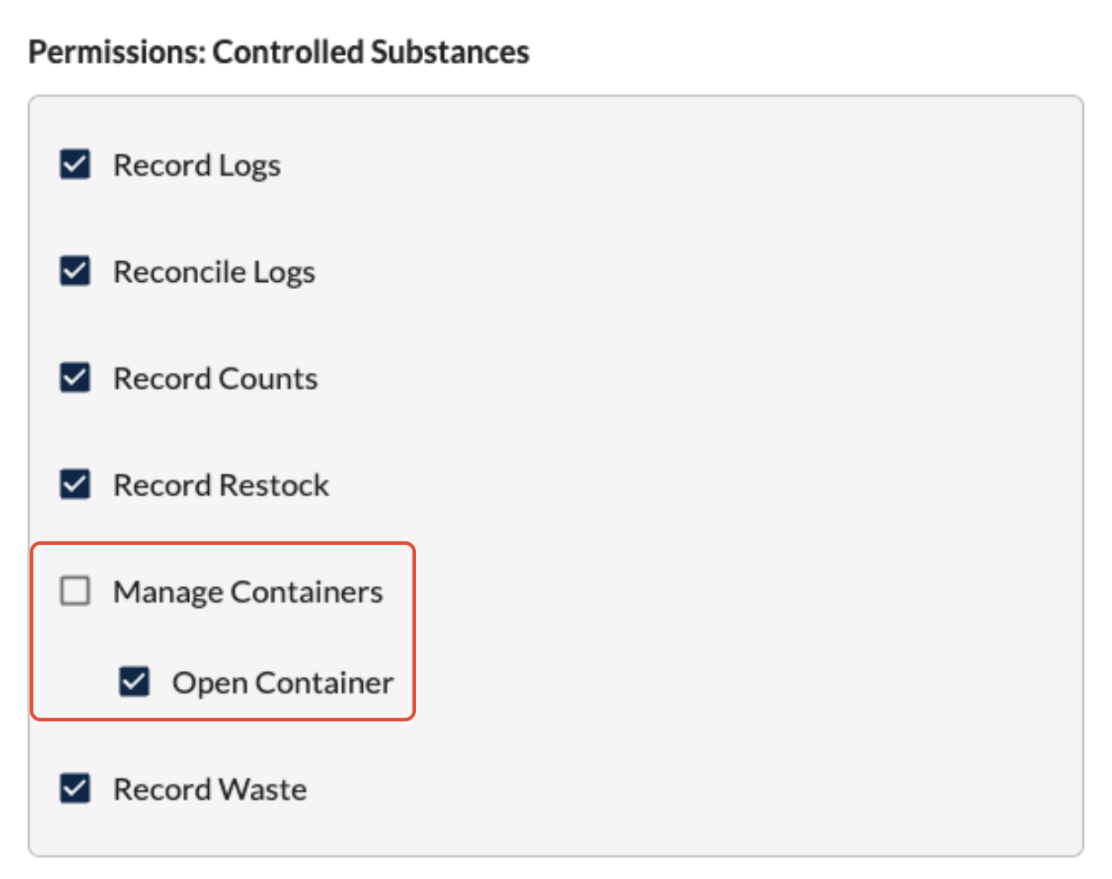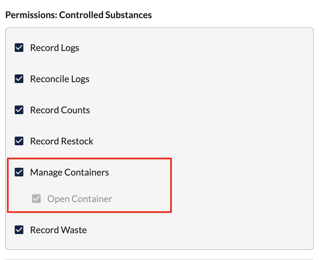 - This will allow staff to open a new container from a log entry window when needed, if they have the permission turned on
